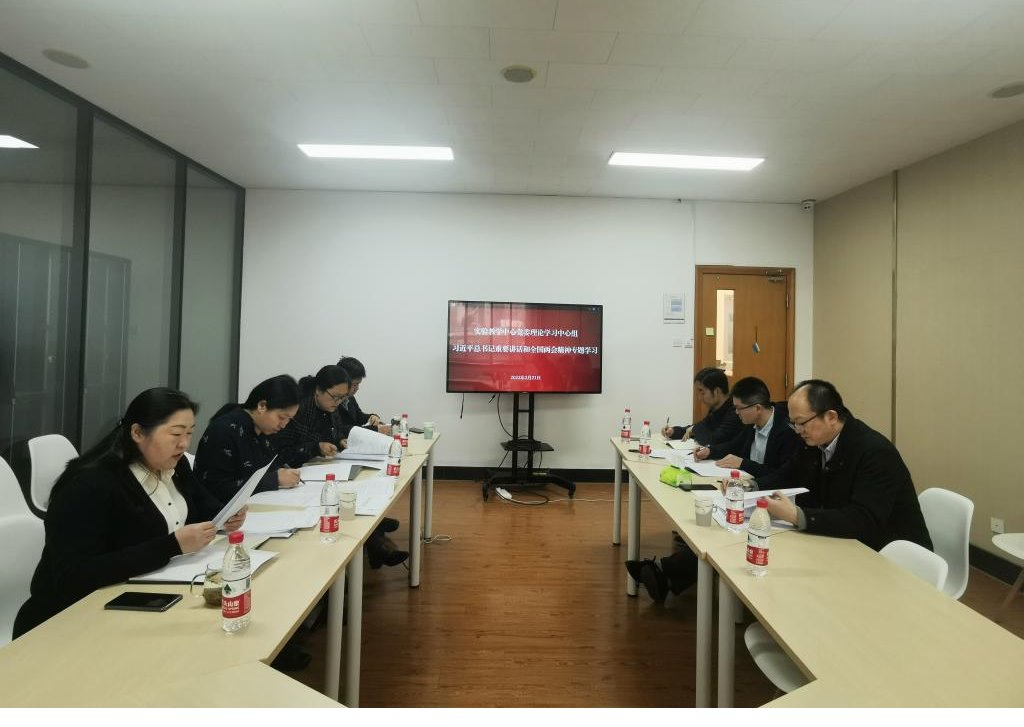 3月21日上午,实验教学中心党委理论学习中心组集体学习习近平总书记重要讲话和全国两会精神。中心党委书记张慧主持学习,中心党委委员和党支部书记参加了学习。