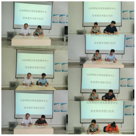 6月23日,中心在舜耕校区实验楼104会议室举行了安全工作责任书签订仪式。中心分层次签订了责任书:中心主任与副主任,中心分管安全副主任与各安全工作组组长,各安全工作组组长与组员分别签订了责任书,将实验室安全责任层层落实到人到岗到位。