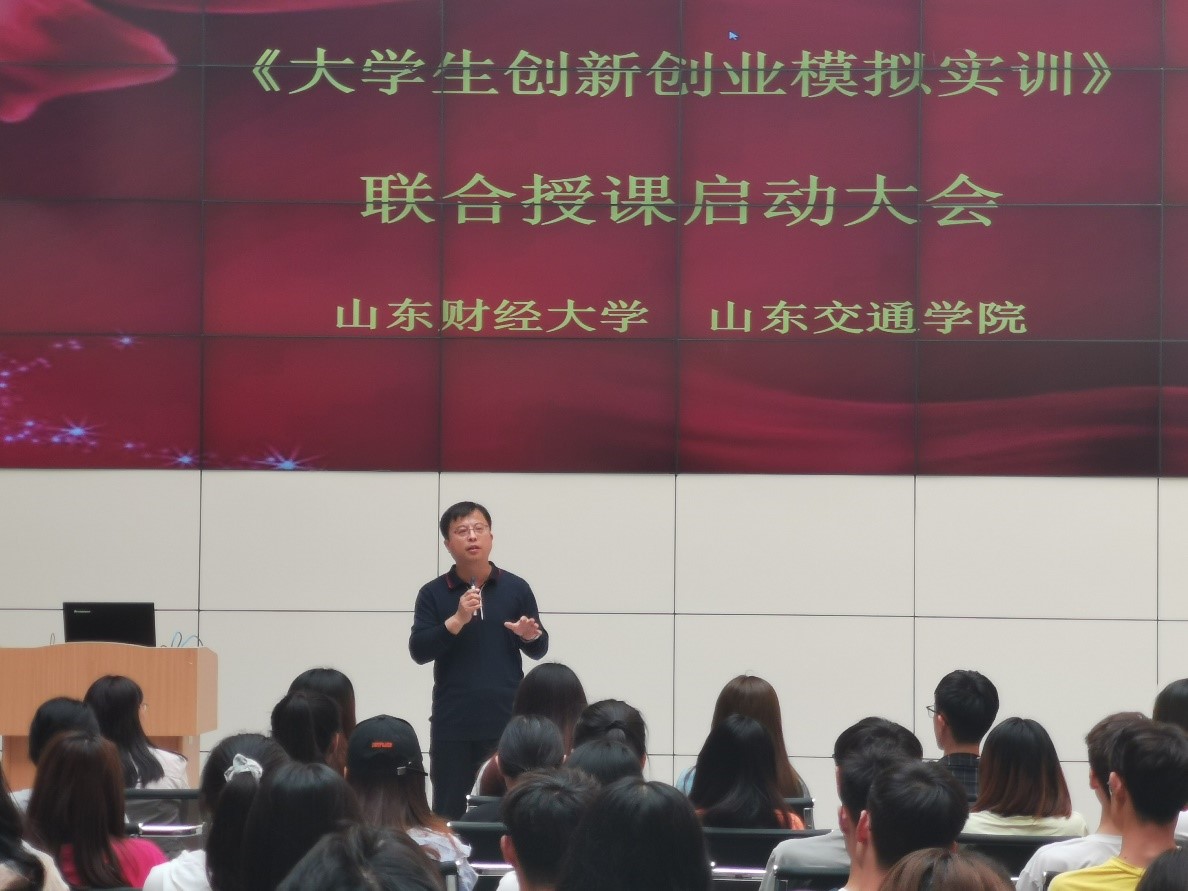 为推进实施2021年初10所高校签署的《山东省区域高校经管类专业实验资源共建共享战略合作倡议》内容,经过近期连续开展3次师资交流培训,2021年5月13日下午,山东财经大学、山东师范大学、山东交通学院三校师生联手同步启动一期《大学生创新创业模拟实训》联合授课。其中,山东师范大学与山东财经大学采用了线上同步模式,山东交通学院与山东财经大学采用了线下共进模式。