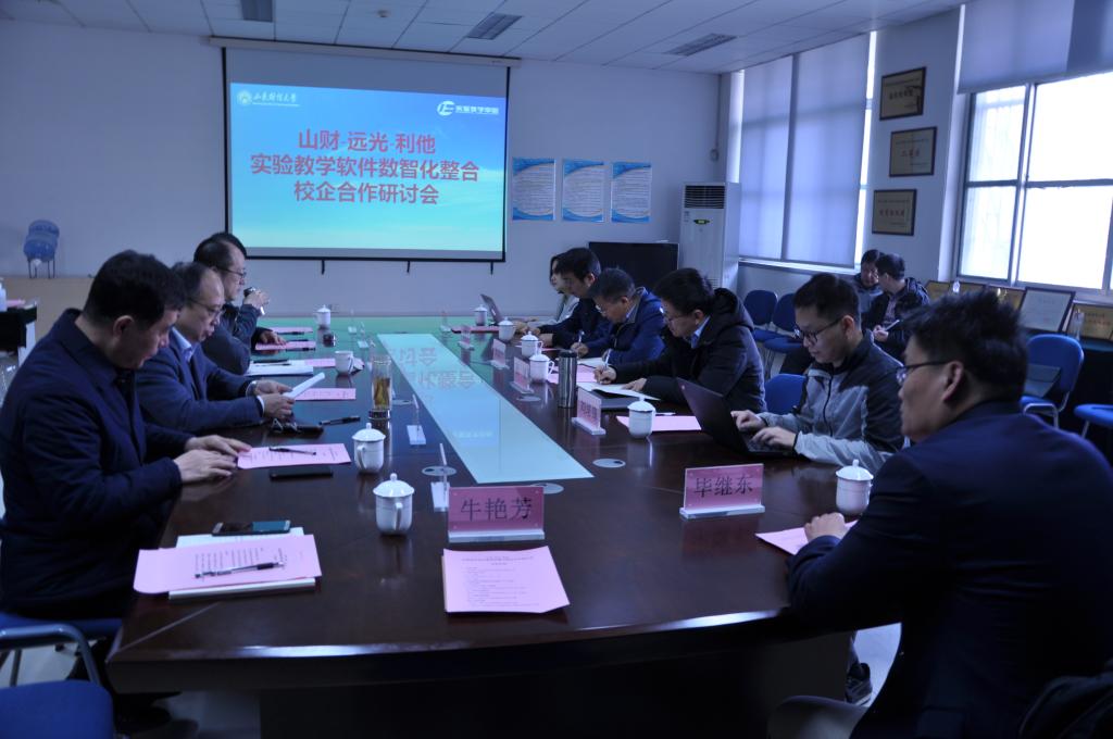 3月9日,实验教学软件数智化整合校企合作研讨会在舜耕校区实验楼会议室举行。厦门亦天利他教育总经理张展、远光软件战略咨询及合作部总经理夏爱平等一行5人,学校实验教学中心班子成员,会计学院牛艳芳,工商管理学院毕继东,中心技术部、教学研究部、办公室人员参加研讨会。会议由中心副主任李斌主持。中心主任丛建阁、利他总经理张展分别代表校方、企业方致辞。