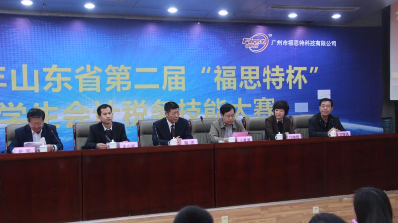 10月26日,山东省第二届“福思特杯”大学生会计税务技能大赛在我校舜耕校区隆重举行,比赛由山东省教育厅高教处主办,我校财税学院、会计学院和实验教学中心联合承办,广州市福思特科技有限公司提供技术支持。我校教务处陶虎处长、会计学院王爱国院长、财税学院谢申祥院长、实验教学中心宫锡强副主任以及广州市福思特科技有限公司董事长闫晓霞等和来自全省56所高校的68支队伍、500多名师生参加了开幕式。